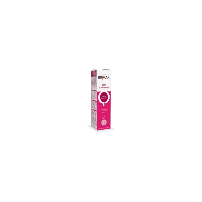 BIOFAR Fer acide folique | 20 comprimés effervescents - Prix Maroc